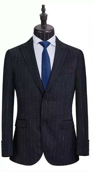 此款男士休閑定制西裝采用半麻襯工藝,為黑色條紋款,黑色西裝是男士經(jīng)典流傳的款式,但是休閑西裝定制款把版型設計得更加寬松修身,減少了正式感,尤其適合年輕的男士!